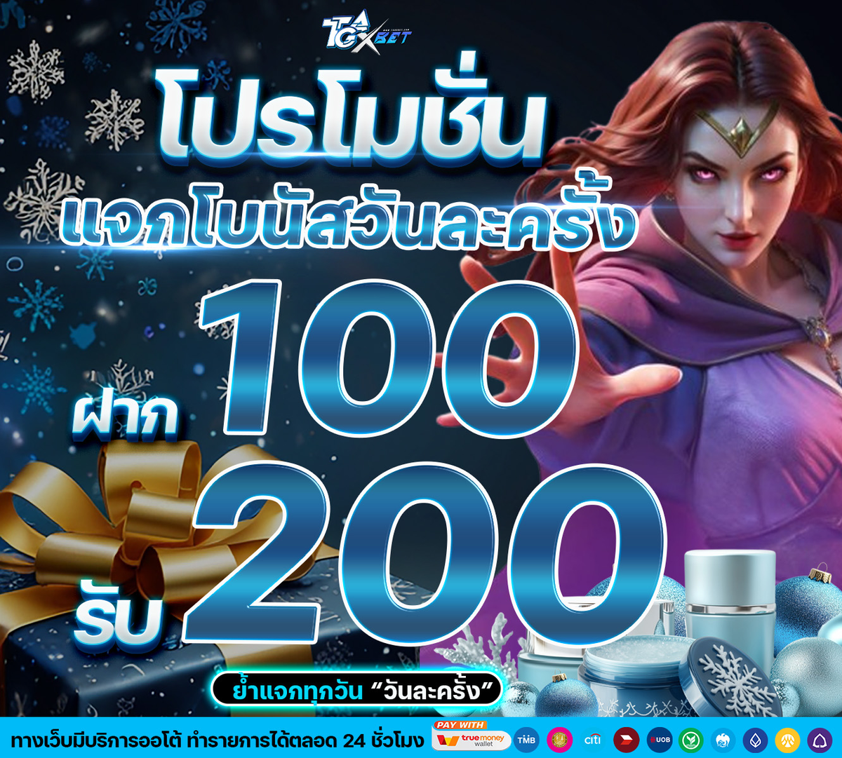 แจกโบนัสวันละครั้ง ฝาก 100 รับ 200