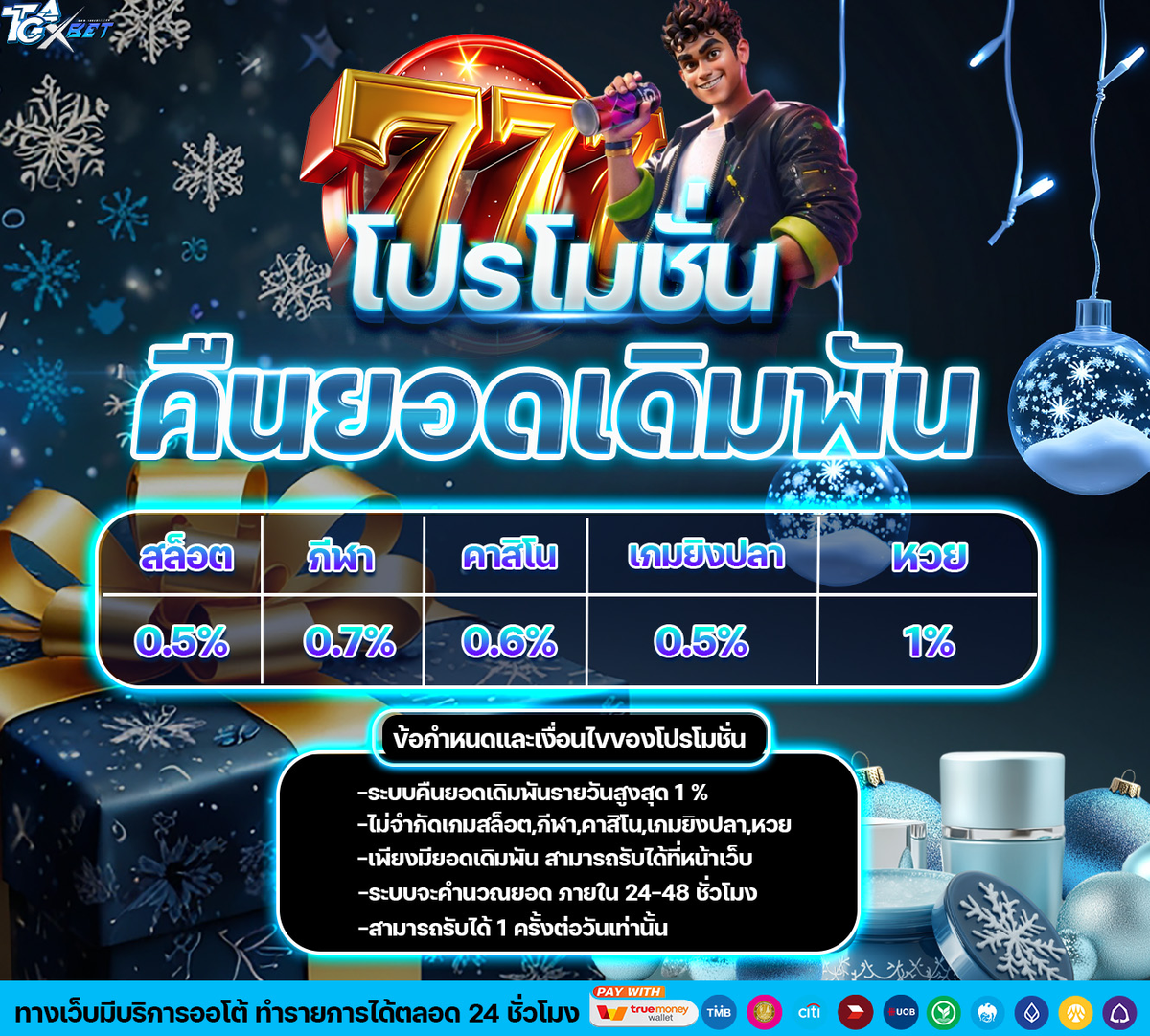 - ยอดฝากแรกของวัน ตัดรอบทุกวันเวลา 00.00 น.