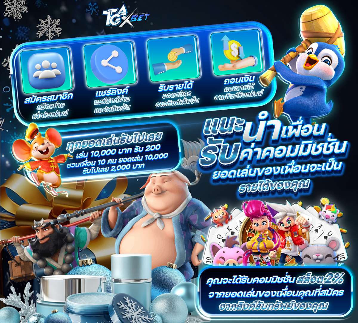 ชวนเพื่อนมาเล่นกับ TgaXbet เราแบ่งให้ทันที 2%